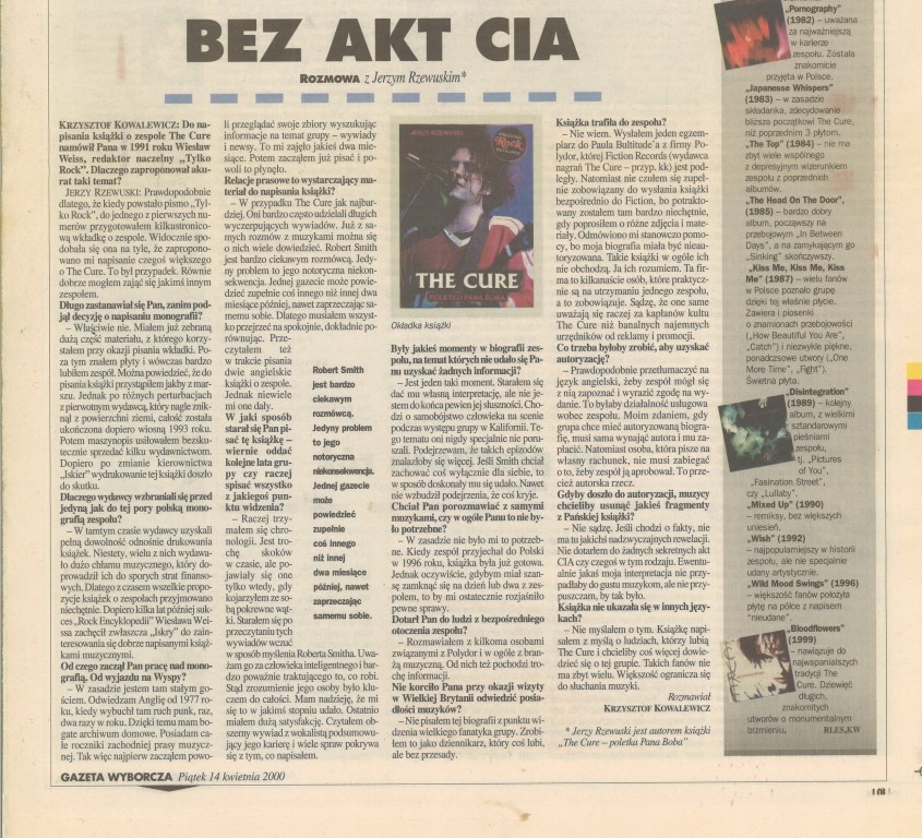 Jerzy Rzewuski: Prawdopodobnie dlatego, że kiedy powstało pismo „Tylko Rock” do jednego z pierwszych numerów przygotowałem kilkustronicową wkładkę o zespole. Widocznie spodobała się ona na tyle, że zaproponowano mi napisanie czegoś większego o The Cure. To był przypadek. Równie dobrze mogłem zająć się jakimś innym zespołem.